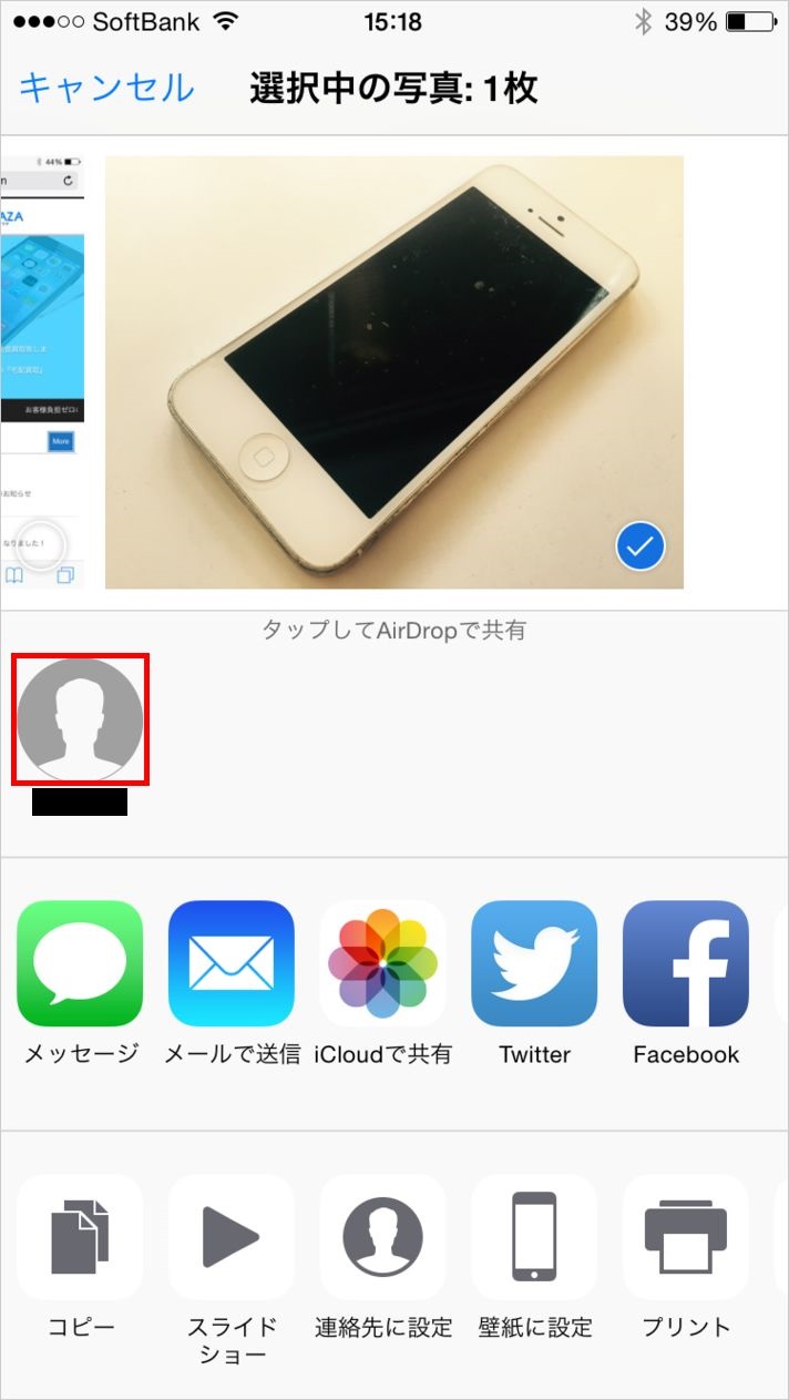 相手のiPhoneが表示されるのでタップ。相手に送信できます。